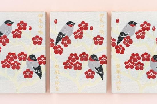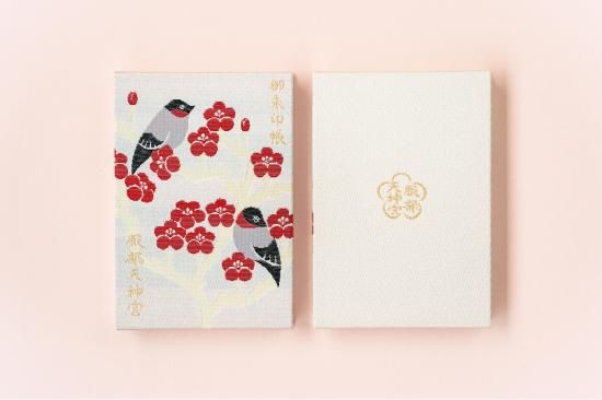 天神さまのお使いである“鷽(うそ)”と、ご神木の梅をあしらった特製ご朱印帳です。